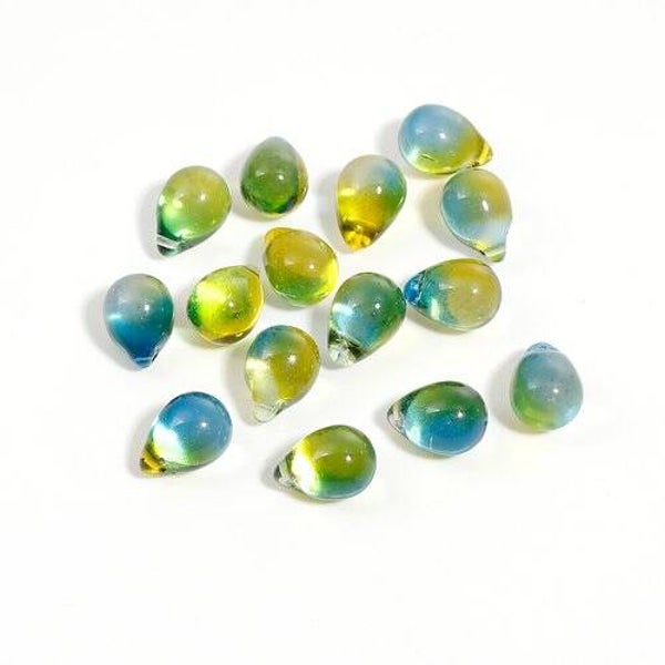 2 perles en verre larme de sirène goutte jaune bleu 14x10mm - sc0
