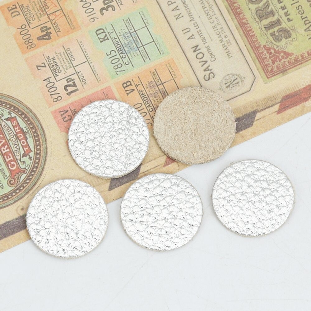 2 appliques cuir rond argenté 22mm - création bijoux - sc0110236 en cuir véritable  ces appliques peuvent àªtre utilisées en couture, pour customiser un sac, une veste ou encore pour la création de bijoux. a vous de choisir ! en avant pour la création ! venez visiter tous mes autres articles pour toutes vos créations de bijoux livraison rapide et soignée