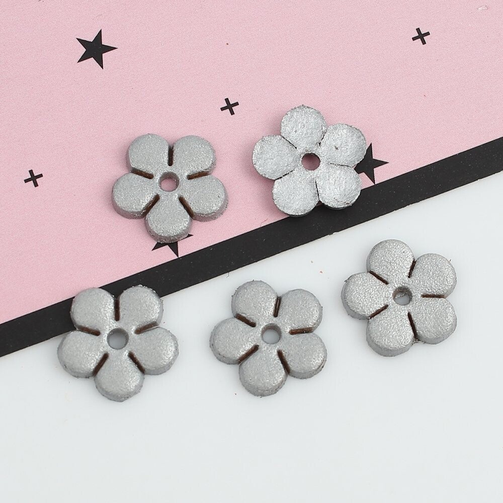 2 appliques cuir fleur argenté 12mm - création bijoux - sc0110215-en cuir véritable  ces appliques peuvent àªtre utilisées en couture, pour customiser un sac, une veste ou encore pour la création de bijoux. a vous de choisir ! en avant pour la création ! venez visiter tous mes autres articles pour toutes vos créations de bijoux livraison rapide et soignée