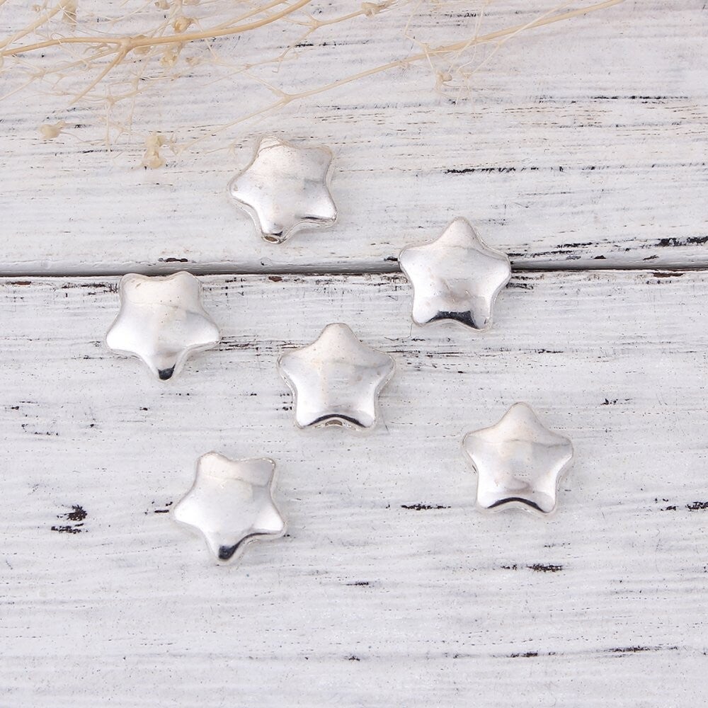 50 perles etoiles argentées 11mm -créations bijoux- sc0100818 en alliage de zinc dimensions : 11mm trou : 1mm venez visiter ma boutique pour toutes vos créations ! important avant de commander toutes les commandes sont envoyées sous 48h en lettre suivie. toutes les commandes de plus de 500gr et celles dont la livraison est gratuite seront envoyées par mondial relay obligatoirement. merci de votre compréhension.