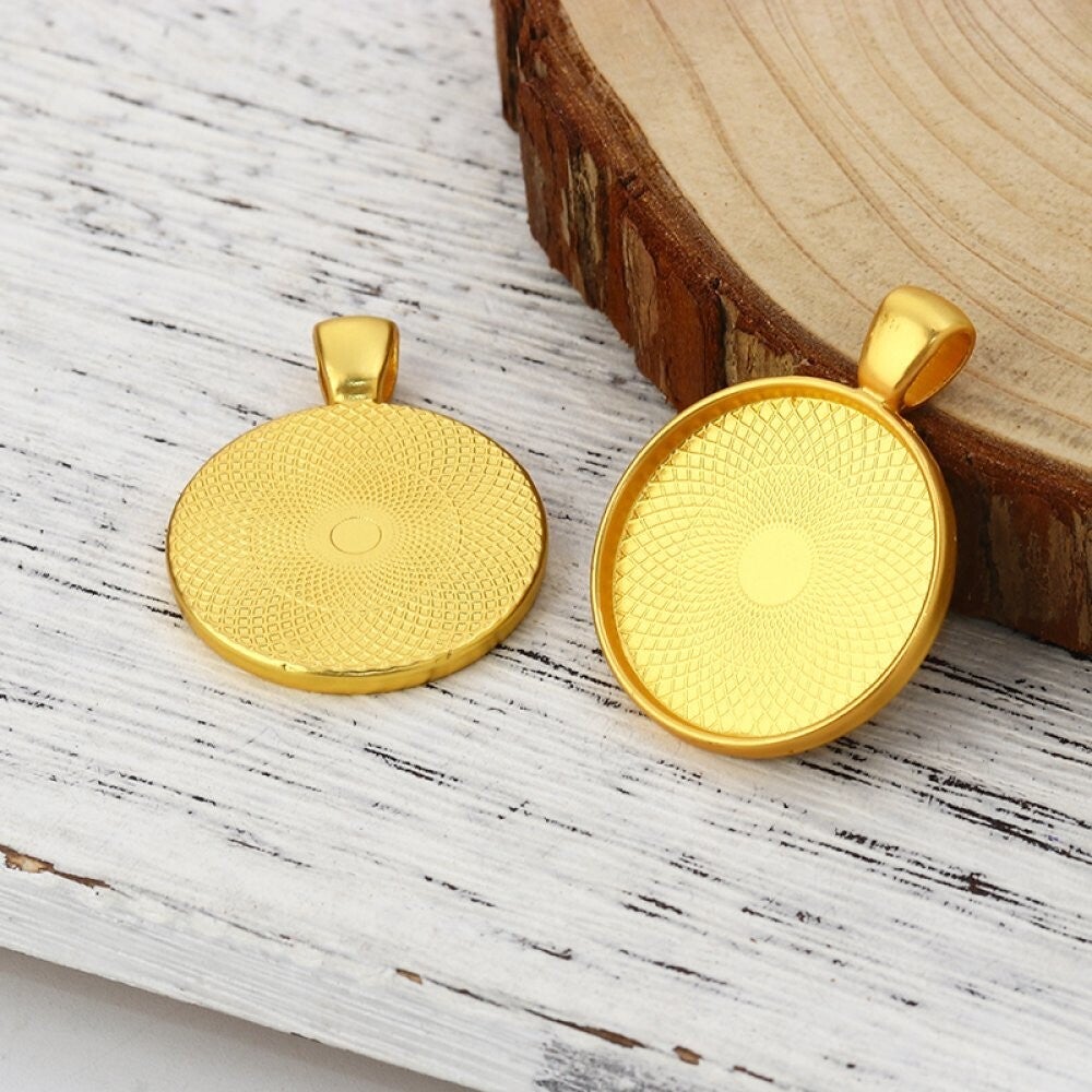5 supports pendentif rond doré pour cabochon 25mm -sc0116377-en alliage de zinc sans nickel ni plomb taille du trou : 6mm venez visiter ma boutique pour toutes vos créations ! livraison rapide et soignée